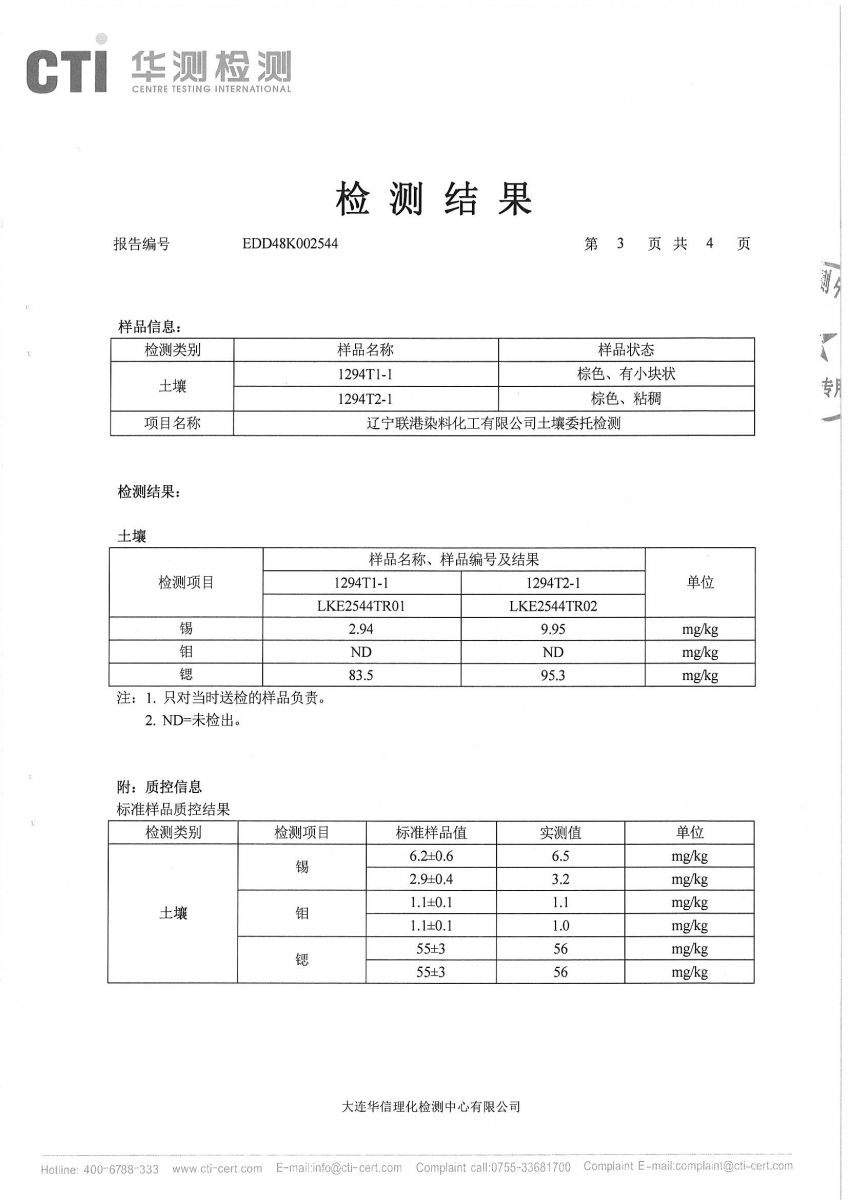 遼寧聯(lián)港染料化工有限公司土壤檢測(cè)結(jié)果