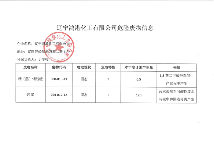 鴻港化工危險廢物信息